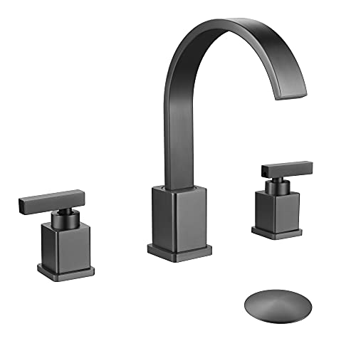 reddit WorbWay Bathroom Faucet Black Stainless,2 Lever Handle 8 inch Widespread Bathroom Sink Faucet with Pop-Up Drain